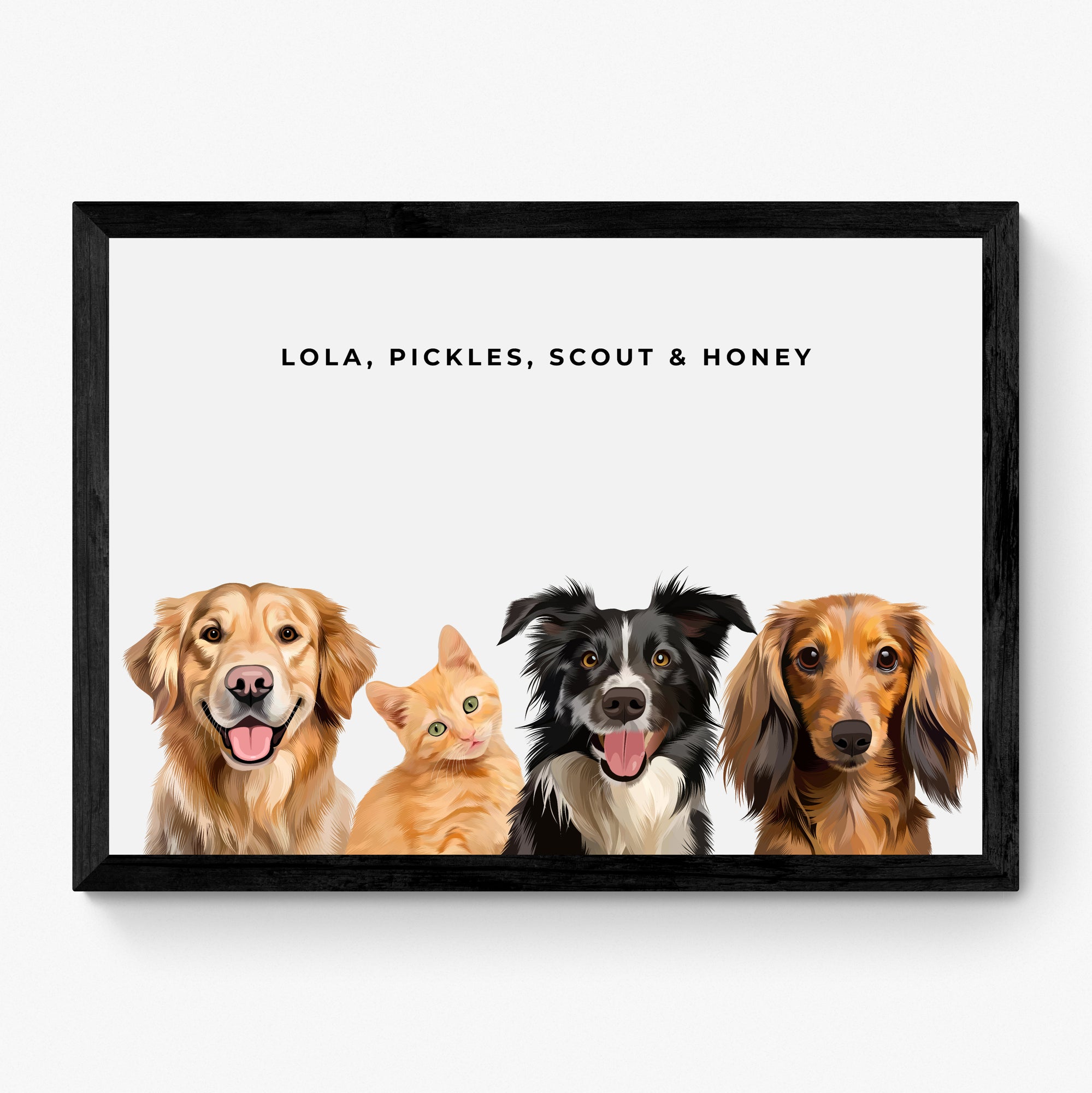 Absolutely! We can fit up to four pets in one portrait, so all your furry (or feathery!) friends can shine together. If you’re hoping to feature more than four, just reach out to us—we’d love to chat about capturing your whole crew in one masterpiece! 🐾