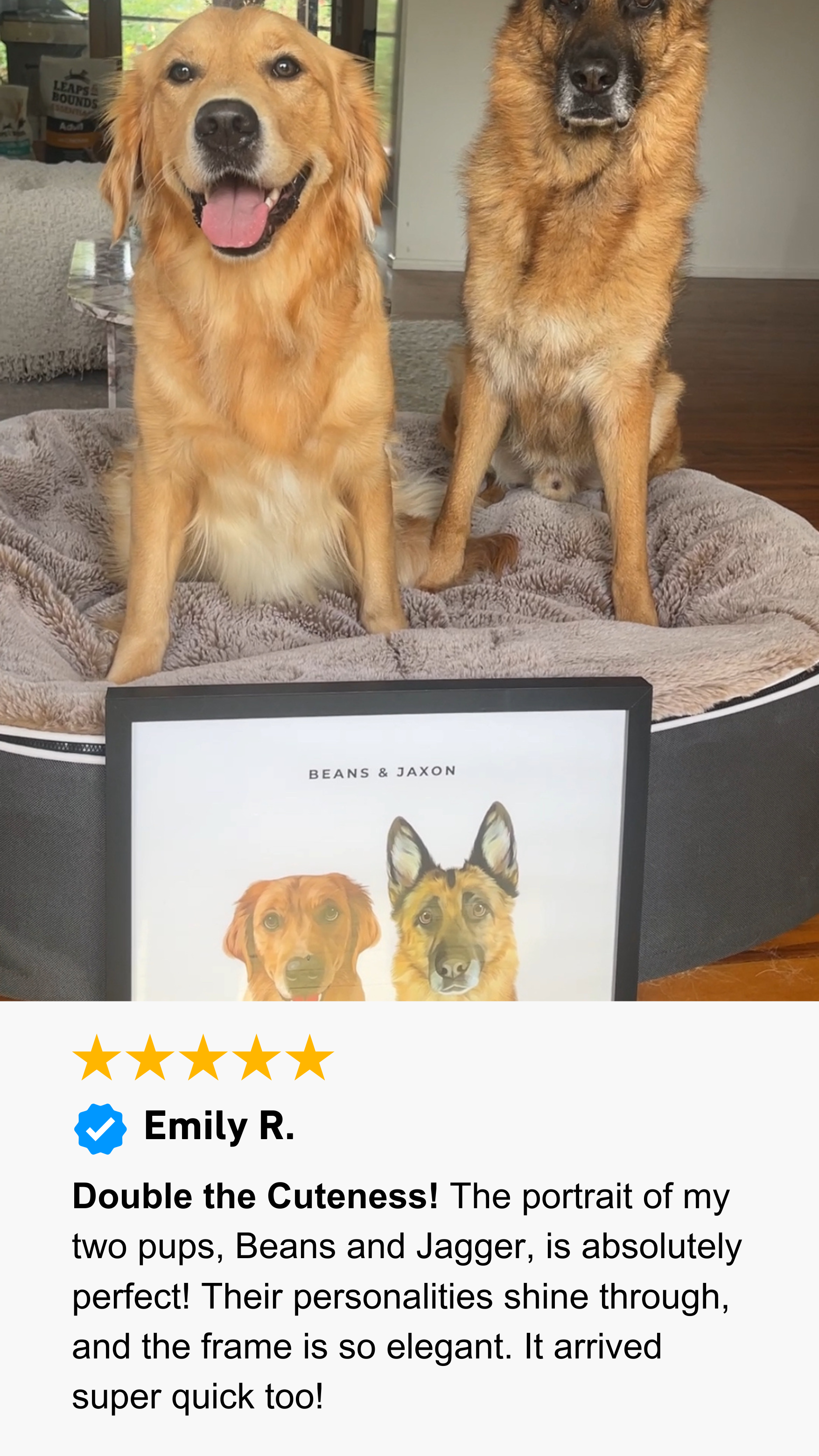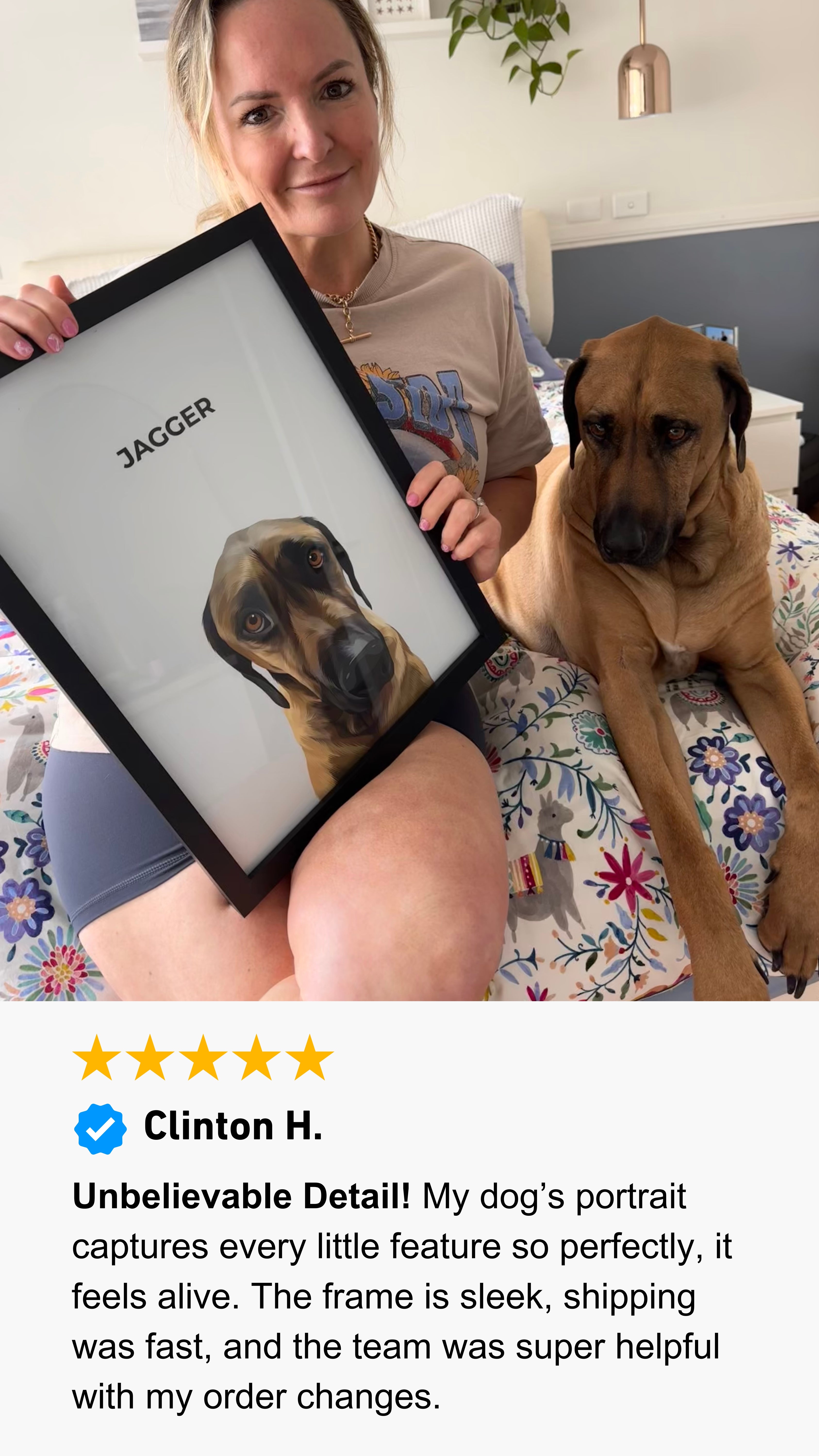 We'll take it from here, creating a stunning, high-quality portrait that celebrates your furry best friend and turns your cherished memories into a timeless keepsake!