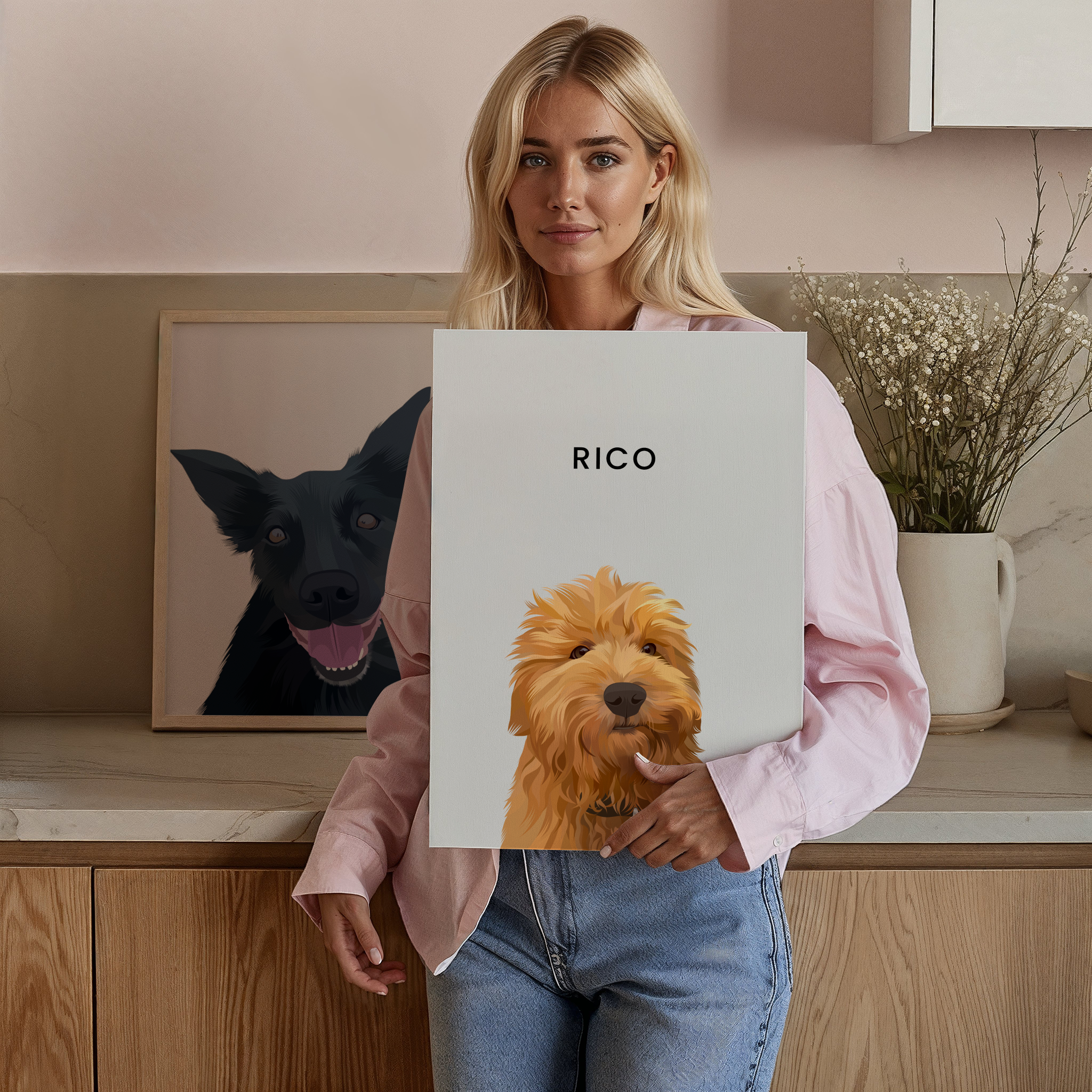 Create a beautiful custom pet portrait at Tara's Home! Simply upload a photo of your pet and personalize it with their name. Each portrait is crafted by talented artists using a manual design process for unique, authentic artwork. Enjoy free shipping on all orders and a 100% satisfaction guarantee.